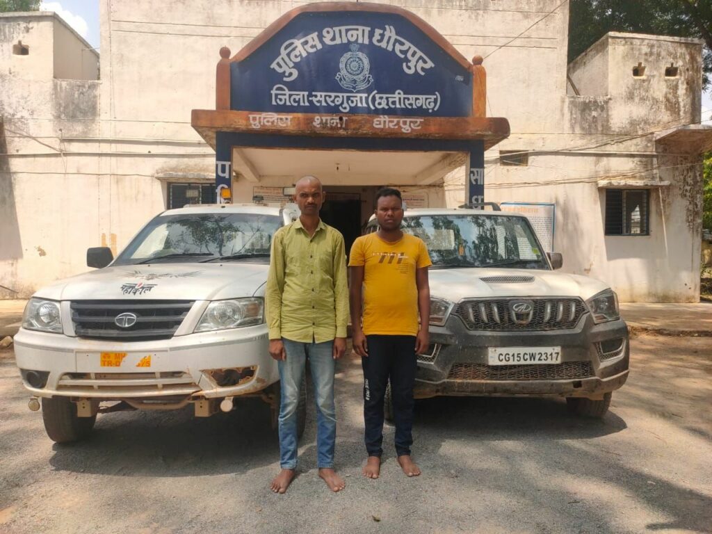 ⏩ सरगुजा पुलिस द्वारा जारी अभियान *”ऑपरेशन विश्वास”* के तहत आपराधिक गतिविधियों मे संलिप्त आरोपियों की लगातार धरपकड़ की जा रही हैं, इसी क्रम मे मामले का संछिप्त विवरण इस प्रकार हैं कि प्रार्थी अंजय टोप्पो साकिन करदोनी थाना लुन्ड्रा द्वारा दिनांक 30/05/24 कों थाना धौरपुर आकर रिपोर्ट दर्ज कराया कि घटना दिनांक 29/05/24 कों प्रार्थी अपने ड्राइवर विवेक यादव के साथ शादी का सामान पीकप वाहन मे लोड कर शंकरगढ़ पहुंचाने गया था, वापस आते समय पीकप वाहन मे 18 नग सरई लकड़ी का सिल्ली लेकर वापस आ रहा था, इसी बीच दिनांक 30/05/24 कों देर रात स्कार्पियो वाहन मे सवार पारस सिंह, जवाहिर आयाम एवं अन्य 02 व्यक्तियों द्वारा उक्त पीकप वाहन कों ओवरटेक कर स्कार्पियो वाहन कों सामने अड़ा कर ड्राइवर के साथ मारपीट करने पर ड्राइवर मौका देखकर फरार हो गया, ड्राइवर के भाग जाने पर आरोपी पारस एवं जवाहिर प्रार्थी कों अपने स्कार्पियो वाहन मे बैठाकर ले गए एवं अन्य 02 आरोपियों द्वारा पीकप वाहन कों लेकर मौक़े से भाग गए, और पारस एवं जवाहिर प्रार्थी कों परसा मे छोड़कर मौक़े से फरार हो गए, बाद मे आरोपियों द्वारा प्रार्थी कों मोबाइल फ़ोन से धमकी देते हुए 02 लाख रुपये की मांग की जाने लगी, मामले मे प्रार्थी की रिपोर्ट पर थाना धौरपुर मे अपराध क्रमांक 45/24 धारा 394, 34 भा.द.वि.का अपराध दर्ज कर विवेचना मे लिया गया।