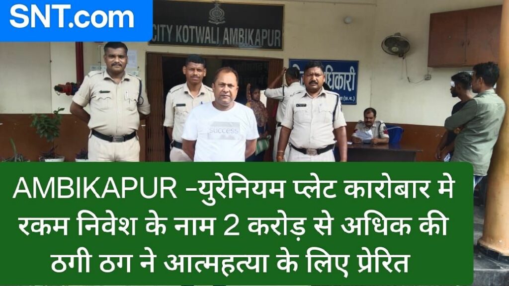 ???? युरेनियम प्लेट कारोबार मे रकम निवेश के नाम पर ठगी कर रकम वापसी नही करते हुए आत्महत्या के लिए प्रेरित करने के मामले मे सरगुजा पुलिस को मिली बड़ी सफलता।