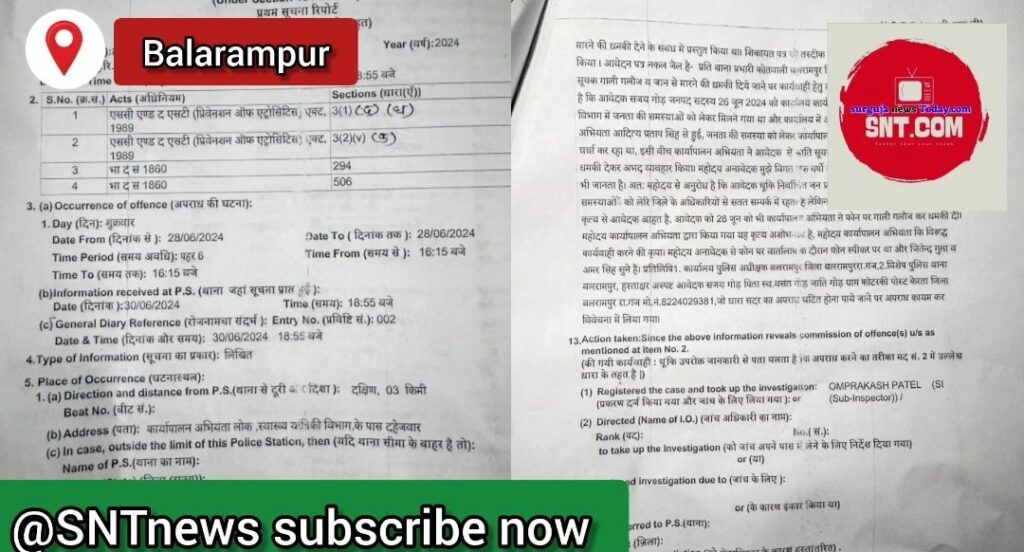 बलरामपुर जिले के जनपद सदस्य के द्वारा प्रभारी कार्यपालन अभियंता रहे आदित्य प्रताप पर आदिवासी जनप्रतिनिधि से जाति सूचक गाली-गलौज व जान से मारने की धमकी देने का आरोप लगाते हुए इसकी शिकायत बलरामपुर थानें में की गई थी जहां पुलिस नें इस मामले में प्रभारी कार्यपालन अभियंत के खिलाफ मामला दर्ज कर लिया है ….और जांच प्रारंभ कर दिया है …जनपद सदस्य संजय गोड़ ने अपनी शिकायत में बताया है कि पीएचई विभाग के तत्कालीन ईई आदित्य प्रताप ने उन्हें जान से मारने की धमकी दी है,, इतना ही नहीं उसने जातिसूचक गाली गलौज करते हुए दुर्व्यवहार भी किया है,, बता दें कि तत्कालीन ईई आदित्य प्रताप सिंह को काम में लापरवाही के चलते शासन ने 27 जुन को ही हटा दिया है।