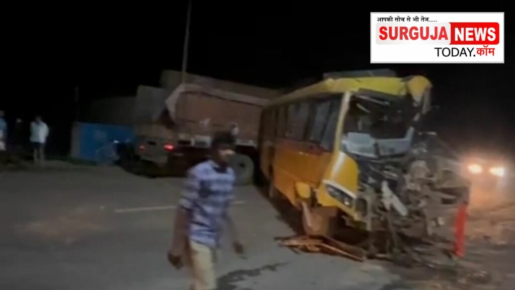 यात्री बस सीतापुर से अंबिकापुर की ओर जा रही थी जहां रघुनाथपुर चौकी के समीप बस चालक के द्वारा लापरवाही पूर्वक ढंग से गाड़ी चलाते हुए ट्रक को पीछे से टक्कर मार दी टक्कर इतनी जबरदस्त थी कि मौके पर ही खलासी ही मौत हो गई तो वहीं सात लोगों की घायल होने की खबर है।