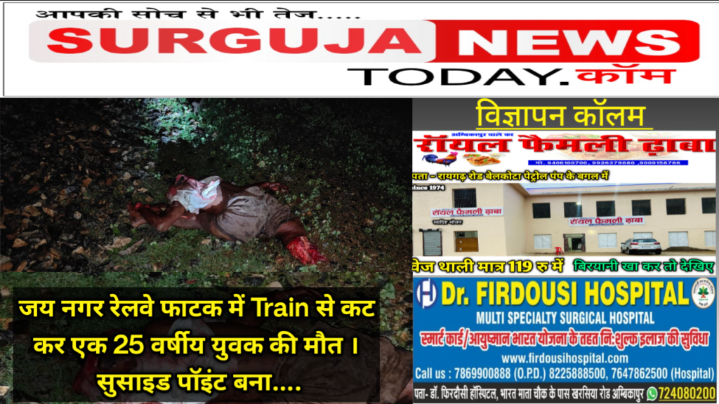 जय नगर रेलवे फाटक में Train से कट कर एक 25 वर्षीय युवक की मौत ।