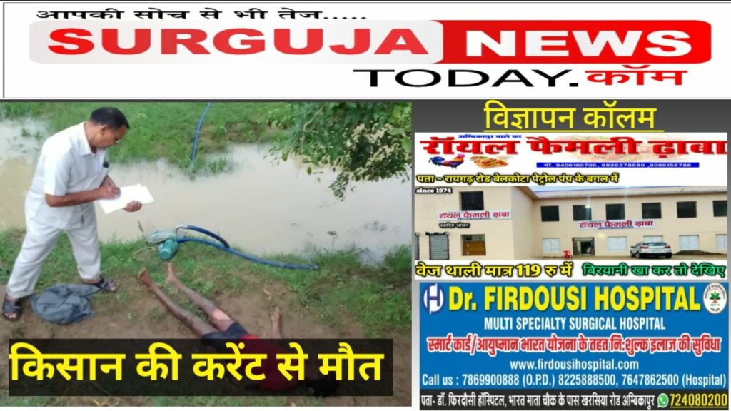सरगुजा लखनपुर ब्रेकिंग – किसान की बिजली करंट के चपेट में आने से मौत “
