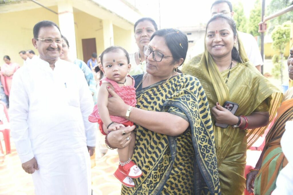 इसके बाद श्रीमती ठाकुर ने जिले के आंगनबाड़ी केंद्रों का भी निरीक्षण किया तथा सुपोषण चौपाल लगाकर महिलाओं, आंगनबाड़ी कार्यकर्ताओं, आंगनबाड़ी सहायिकाओं से मुलाकात करते हुए उन्हें पोषण के प्रति सजग रहने सलाह दी। इस दौरान उन्होंने आंगनबाड़ी केंद्र इंदिरा नगर, नवापारा और बंगालीपारा का निरीक्षण किया। आंगनबाड़ी केंद्रों में गोदभराई कार्यक्रम में शामिल होकर गर्भवती महिलाओं की तिलक लगाकर विधिवत नारियल,चना, गुड़, फल, सब्जी, श्रृंगार सामग्री भेंटकर शुभकामनाएं देते हुए गोदभराई रस्म अदा की। इस दौरान उन्होंने बड़े दुलार के साथ बच्चों को खीर खिलाकर अन्नप्राशन किया। इस दौरान नवापारा आंगनबाड़ी केंद्र परिसर में आजीविका गतिविधियों का संचालन करने वाली स्व सहायता समूह की महिलाओं ने भी केंद्रीय राज्य मंत्री से मुलाकात की और आय के संबंध में चर्चा की। इसी कड़ी में आंगनबाड़ी केंद्र परिसर में एक पेड़ मां के नाम अभियान के तहत वृक्षारोपण कर सभी को पेड़ अवश्य लगाने प्रेरित करते हुए सुरक्षा की जिम्मेदारी भी लेने कहा। कैबिनेट मंत्री श्रीमती राजवाड़े ने भी इस अवसर पर वृक्षारोपण का एक पेड़ मां के नाम अभियान में भाग लिया। आंगनबाड़ी केंद्र बंगालीपारा में उन्होंने उपस्थित महिलाओं को शासन की योजनाओं की जानकारी दी तथा योजनाओं का लाभ लेने प्रेरित किया। उन्होंने उपस्थित माताओं से अपील करते हुए कहा कि बच्चों को नियमित रूप से आंगनबाड़ी केंद्र भेजें। स्वयं भी केंद्र आएं और देखें कि आंगनबाड़ी केंद्र समय पर खुले, केंद्र में स्वच्छता का बनी रहे। बच्चों के बेहतर विकास के लिए, ये सुनिश्चित करना सभी की जिम्मेदारी है। अपनी सक्रिय सहभागिता से शासन और प्रशासन को सहयोग करें। इसके बाद पीजी कॉलेज ऑडिटोरियम में प्रधानमंत्री श्री नरेंद्र मोदी के मन की बात श्रवण कार्यक्रम में शामिल हुई। इस अवसर पर विधायक अंबिकापुर श्री राजेश अग्रवाल, लुण्ड्रा विधायक श्री प्रबोध मिंज, कलेक्टर श्री विलास भोसकर, सहित स्थानीय जनप्रतिनिधि, गणमान्य नागरिक एवं जिले स्तरीय अधिकारी उपस्थित रहे।