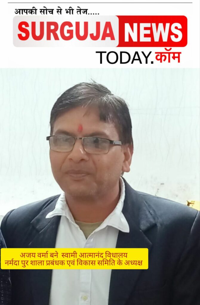 प्रभारी मंत्री सरगुजा ओपी चौधरी के अनुमोदन पर कलेक्टर सरगुजा ने जिला सरगुजा के महाविद्यालय एवं हायर सेकंडरी एवं हाई स्कूल के शाला प्रबंधक एवं विकास समिति के अध्यक्षों का नाम जारी किया मैनपाट विकासखंड के जनपद मुख्यालय नर्मदापुर में संचालित हाईटेक इंग्लिश मीडियम स्कूल स्वामी आत्मानंद विद्यालय के शाला प्रबंधक एवं विकास समिति के अध्यक्ष भाजपा नेता अजय वर्मा को बनाया गया वर्तमान में अजय वर्मा सांसद प्रतिनिधि के तौर पर भाजपा राजनीति दल के एक अहम् जिम्मेदारी संभाल रहे हैं ऐसे में नई, जिम्मेदारी मिलने पर क्षेत्र के जनप्रतिनिधि सहित गांव के लोग बधाई दे रहे हैं ।