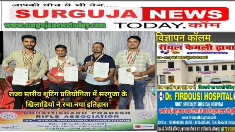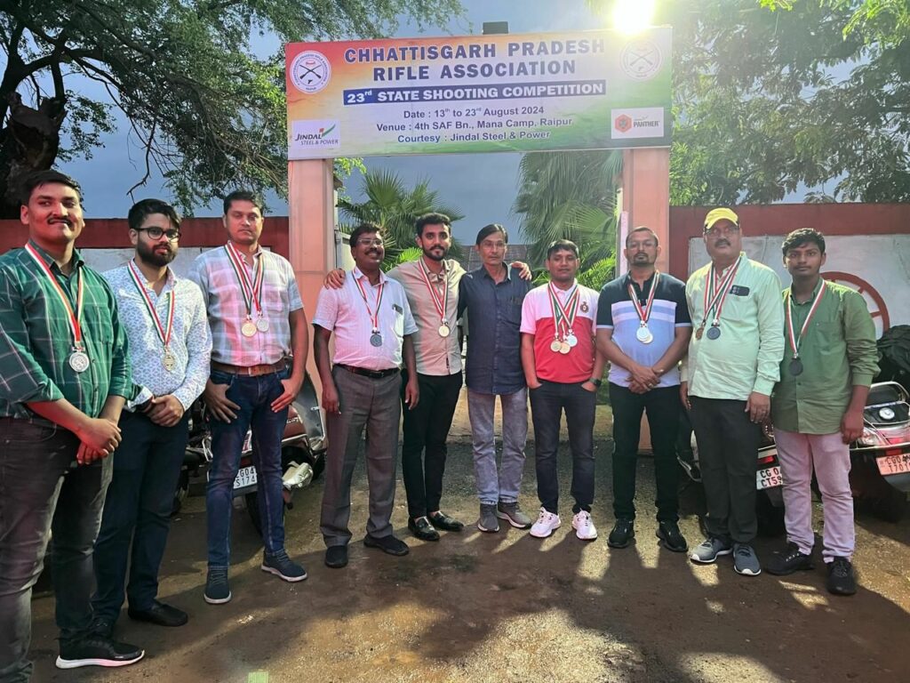 हर वर्ष की भांति इस वर्ष भी छत्तीसगढ़ प्रदेश राइफल एसोसिएशन द्वारा आयोजित 23वीं राज्य स्तरीय शूटिंग प्रतियोगिता 2024 का आयोजन किया गया जिस में सरगुजा जिले से भी अलग अलग वर्गों में प्रतिभागियों ने भाग लिया, 50 मी ओपन साइट राइफल मैन वर्ग में आसिफ अली ने विगत वर्षों का कीर्तिमान तोड़ते हुए 528/600 अंक हासिल कर नया कीर्तिमान स्थापित किया एवं गोल्ड मेडल प्राप्त किया, इसी वर्ग में मिलिंद राज सिंह ने ब्रॉन्ज मैडल हासिल किया, इसी वर्ग के टीम इवेंट में आसिफ अली, मिलिंद राज सिंह और वकील फिरदौसी ने गोल्ड मेडल हासिल किया, और शाहजाद खान, जावेद खान और आदित्य गौतम ने सिल्वर मेडल हासिल किया, वहीं 50 मी. ओपन साइट 3 पोजीशन मेन वर्ग में शाहजाद खान ने गोल्ड मेडल हासिल किया, इसी वर्ग के टीम इवेंट में शाहजाद खान, जावेद खान, और अदीब सिद्दिकी ने सिल्वर मेडल प्राप्त किया, अगले वर्ग में ज़ैनुल हसन फिरदौसी ने 50 मी ओपन साइट मास्टर मेन में सिल्वर मेडल और 10 मी एयर राइफल मास्टर मेन वर्ग में गोल्ड मैडल हासिल किया, इसी कड़ी में 50मी ओपन साइट जूनियर वर्ग में ज़ीशान फिरदौसी ने ब्रॉन्ज मैडल हासिल किया, और 50 मी ओपन साइट 3 पोजीशन मास्टर मेन वर्ग में सफदर अली ने ब्रॉन्ज मैडल हासिल किया।
