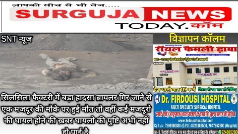 सिलसिला फैक्टरी में बड़ा हादसा– ब्रायलर कोयला bocet गिर जाने से एक मजदूर की मौके पर हुई मौत तो वहीं 3 मजदूरों को इलाज के लिए अंबिकापुर भेजा गया है तो वही कई मजदूरो की घायल होने की ख़बर । अभी कितने मजदूर दबे हैं इसकी पुष्टि नहीं हो पाई है यह बड़ी खबर हम आपको बता रहे हैं सरगुजा के सिलसिला स्थित मां कुदरगढ़ अल्युमिनियम प्राइवेट लिमिटेड कंपनी की जहा कोयला bocet गिर जानें से बडा हादसा हुआ है।