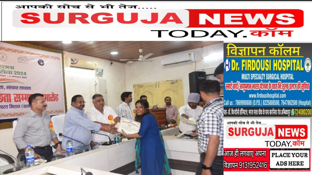 जिला स्तरीय स्वच्छता पुरस्कार से हुए सम्मानित –