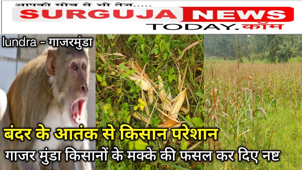बंदरों के आतंक से किसान परेशान हो गए हैं जी हां दरअसल ग्राम पंचायत खराकोंना गाजरमुंडा के किसानों ने कुछ जगह पर मक्के की खेती की हुई है और अब मक्के की खेती की हरवेस्टिंग कुछ दिनों में ही होने वाली है लेकिन हरवेस्टिंग होने से पहले ही बंदरों ने लगभग 200 300 की तादाद में बंदर आकर के मक्के की फसल को नष्ट कर अपना भोजन बना लिए है किसान की फ़सल को तबाह बर्बाद कर दिए नष्ट कर दिए यू कहना गलत ना होगा कि किसानो की खून पसीने के मेहनत के बाद घर आई फसल खत्म हो गई है बंदरों ने पूरे मक्का को तोड़कर खा गए नष्ट कर दिए बर्बाद कर दिए अब किसान जो है अपने आप को आसहज वा उदास सा महसूस कर रहा है अपने आप को नुकसान में महसूस कर रहा है