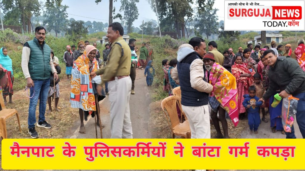 मैनपाट पुलिस ने जरूरतमंद लोगों को बांटा गर्म कपड़ा
