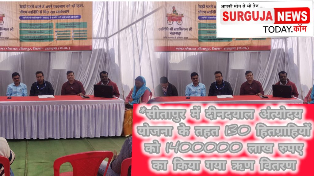 “स्वनिधि भी,स्वाभिमान भी” दीनदयाल अंत्योदय योजना-राष्ट्रीय शहरी आजीविका मिशन अन्तर्गत नगर पंचायत, सीतापुर क्षेत्र अन्तर्गत योजना के प्रारम्भ से आज दिनांक तक ऋण हेतु 265 ऑनलाईन आवेदन प्राप्त हुए, जिसमें से कुल संख्या 130 हितग्राहियो को राशि 14,00,000/- रूपये (चौदह लाख रूपये) का ऋण वितरण किया गया