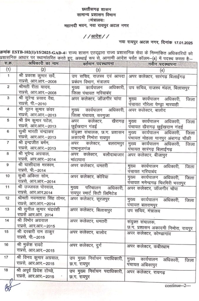 SNT ब्रेकिंग-63 अधिकारियों का हुआ फेरबदल इनको मिला प्रमोशन