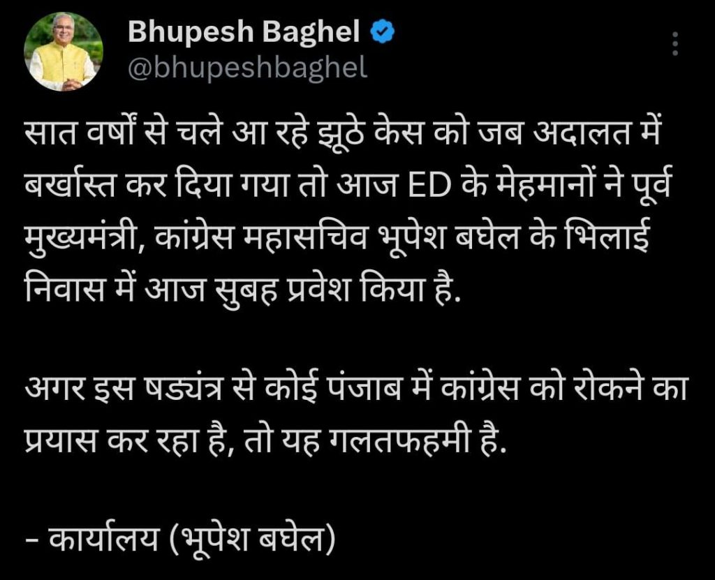 भूपेश बघेल ने x पर ट्वीट कर कहा ????