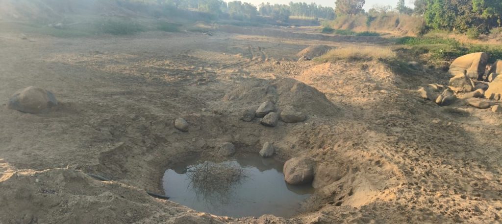 पानी की कमी से चिंतित किसान माननदी में जेसीबी से खुदवा ली कुआंअब कर रहे पंप लगा सिंचाई