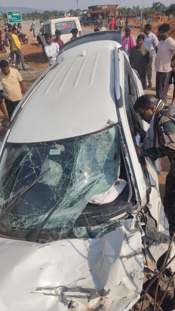 हादसे में कार सवारों को भी चोटें आई हैं। कार को आमाटोली निवासी संतोष पैकरा चला रहा था।