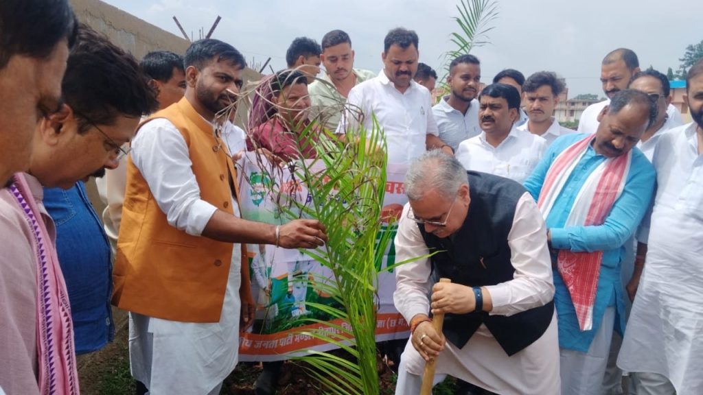 भाजपा क्षेत्रीय संगठन मंत्री अजय जामवाल और प्रदेश संगठन मंत्री पवन साय ने समुदायिक स्वास्थ्य केन्द्र नर्मदापुर में किया पौधरोपण