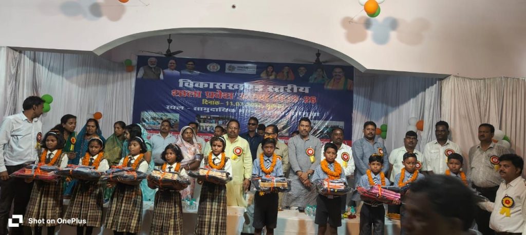 विधायक प्रबोध मिंज द्वारा नव प्रवेशी  छात्र- छात्राओं को तिलक लगाकर मिठाई खिलाकर पाठ्य पुस्तक गणवेश व अन्य सामग्रियों का वितरण किया गया।