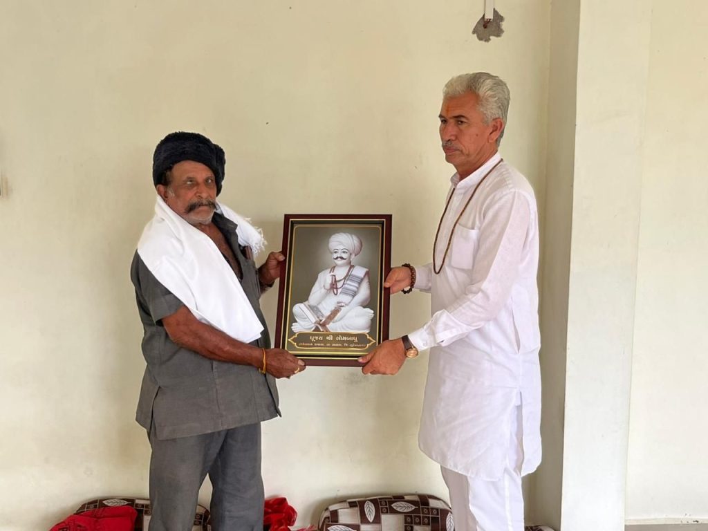 धजाला महंतश्री भरतबापू की जयंती के अवसर पर सामतभाई जेबलिया ने भरतबापू को सम्मानित किया