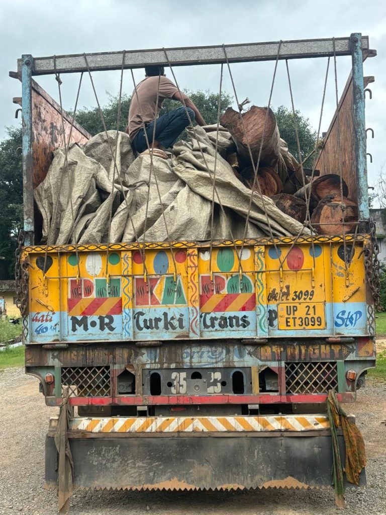 लगभग 30 टन यूके लिप्टस से भरी वाहन को पुलिस ने किया जप्त