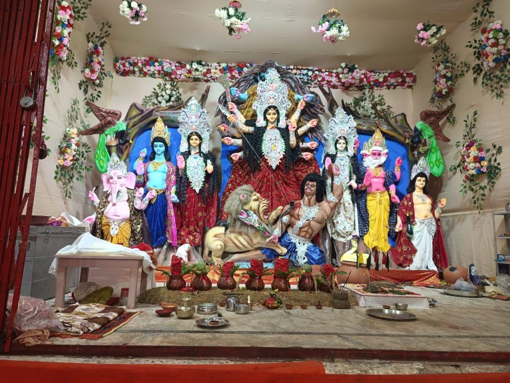 इसी कड़ी में नगर के नव चेतना दुर्गा पूजा समिति द्वारा विशाल एवं आकर्षक पंडाल का निर्माण किया गया है, जो लोगों के लिए मुख्य आकर्षण का केंद्र बना हुआ है। विद्युत सज्जा और भव्य कलाकृतियों से सुसज्जित यह पंडाल नवरात्र की आस्था और उत्साह को और अधिक दिव्यता प्रदान कर रहा है।