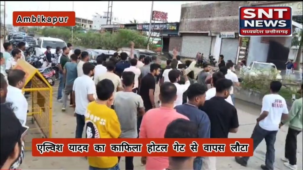 अंबिकापुर: एल्विश यादव का काफिला लौटा, पर्पल ऑर्किड होटल के बाहर हिंदू संगठनों का बवाल