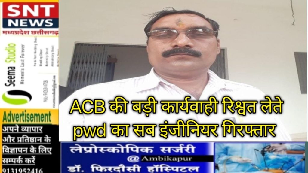 अंबिकापुर ACB की टीम ने आज एक बड़ी कार्रवाई करते हुए लोक निर्माण विभाग (PWD) के सब इंजीनियर सी.पी. बंजारे को ₹21,000 की रिश्वत लेते हुए रंगे हाथों गिरफ्तार किया है।