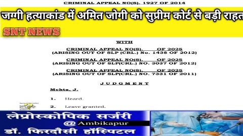 New Delhi, [Insert Date] – In a landmark judgment in the Jaggi murder case, the Supreme Court has reaffirmed the clean chit given to Mr. Amit Jogi. The Court dismissed all petitions filed by the State of Chhattisgarh and Mr. Satish Jaggi challenging his acquittal, granting major legal relief to Mr. Jogi.