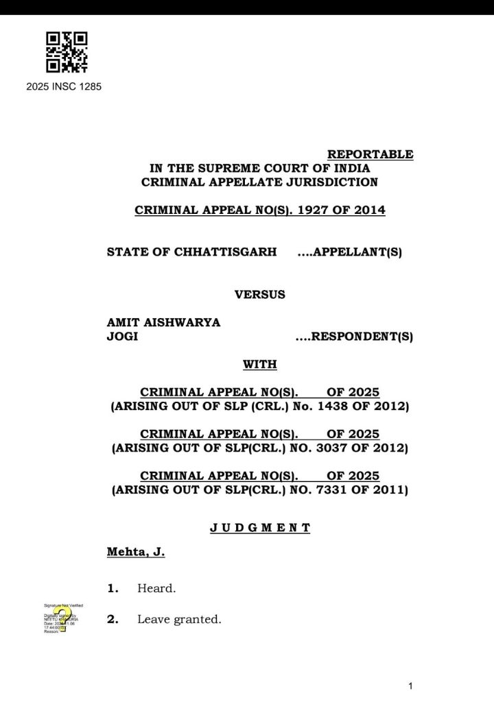 This order upholds a previous decision of the High Court, which had dismissed all four petitions (filed by the State of Chhattisgarh, CBI, and Satish Jaggi) challenging Mr. Jogi’s acquittal. The Supreme Court has now fully affirmed the High Court’s judgment with respect to the State and Mr. Jaggi.