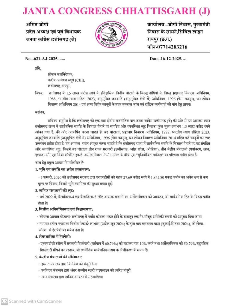 • छत्तीसगढ़ में पर्याप्त कोयला भंडार होने के बावजूद आयात—जोगी ने इसे “स्पष्ट मिलीभगत” बताया