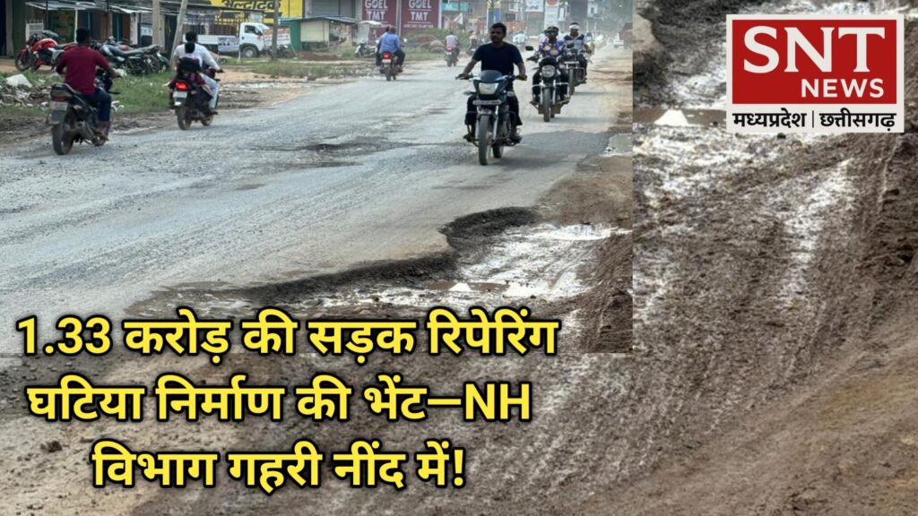 घटिया निर्माण की भेंट चढ़ चुका NH विभाग का 1.33 करोड़ का सड़क रिपेरिंग कार्य।