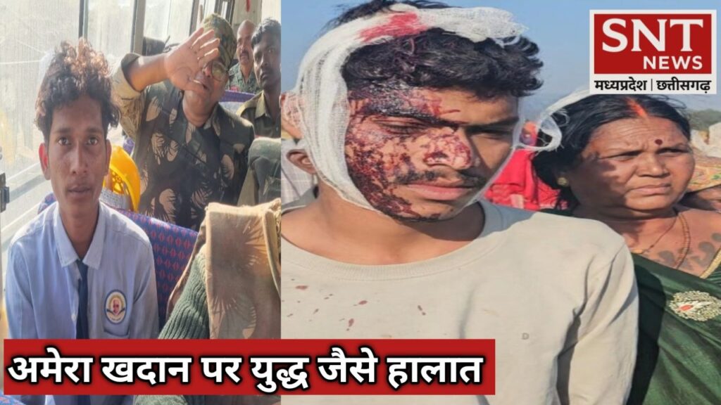 अमेरा खदान विस्तार को लेकर के ग्रामीण एवं पुलिस के बीच खूनी संघर्ष स्कूली छात्र को पुलिस ने लिया हिरासत में