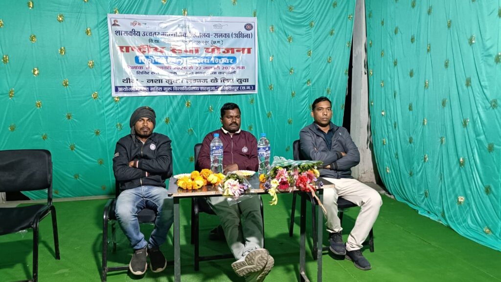 राजेश गुप्ता शासकीय उच्चतर माध्यमिक विद्यालय सलका (अघिना) के राष्ट्रीय सेवा योजना इकाई के द्वारा विशेष सात दिवसीय शिविर का आयोजन दिनांक 16 जनवरी 2026 से 22 जनवरी 2026 तक ग्राम पंचायत नया करकोली में आयोजित है शिविर के उद्घाटन अवसर पर सरपंच ग्राम पंचायत नया कारकोली देवकुमार सिंह ने स्वामी विवेकानंद और मां सरस्वती की प्रतिमा पर पूजा अर्चना पर कार्यक्रम की शुरुआत की गई साथ ग्राम पंचायत नया करकोली के उप सरपंच शिक्षक श्री बृजराज सिंह, एनएसएस के स्वयंसेवक और काफी संख्या में ग्रामीण उपस्थित थे कार्यक्रम अधिकारी सुनील कुमार चक्रधारी ने बताया यह शिविर लगातार सात दिनों तक चलेगा