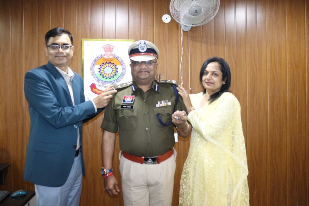 आईजी सरगुजा रेज सरगुजा ने कॉलर बैच लगाकर आईपीएस राजेश कुमार अग्रवाल को दी पदोन्नति