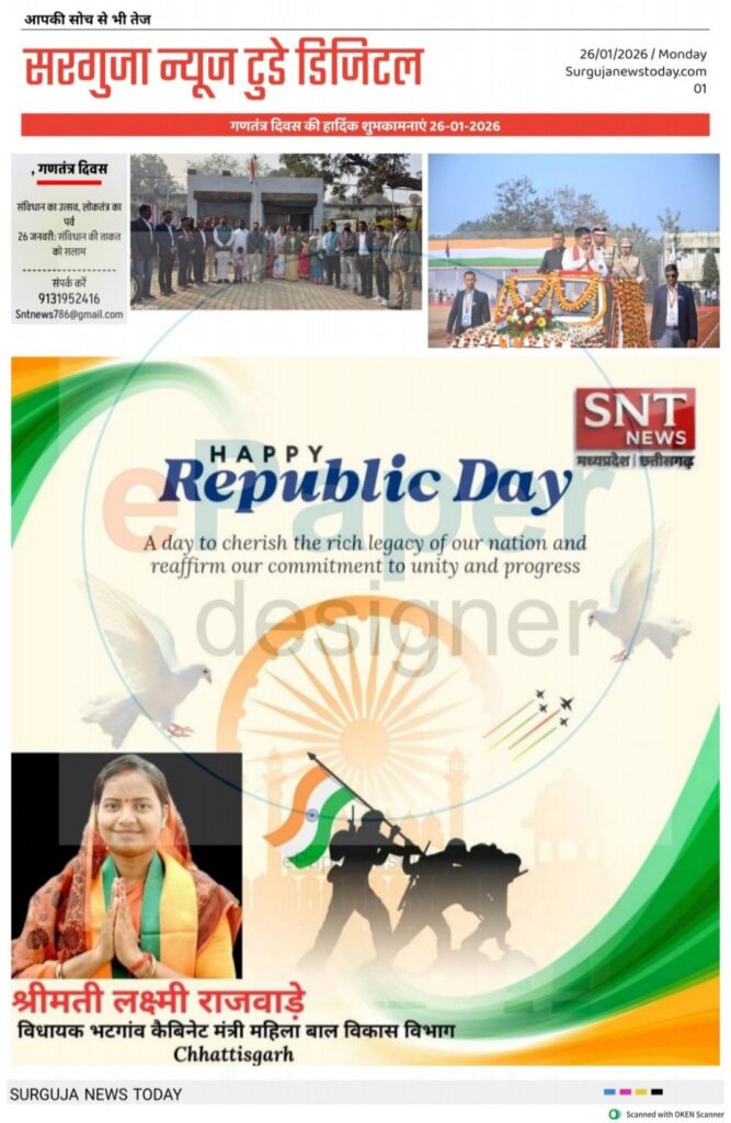 26 जनवरी 2026  प्रदेशभर में 77वां गणतंत्र दिवस हर्षोल्लास और देशभक्ति के वातावरण में मनाया गया। इसी कड़ी में जिला बलरामपुर के पुलिस लाइन ग्राउंड में आयोजित जिला स्तरीय मुख्य समारोह में महिला एवं बाल विकास तथा समाज कल्याण मंत्री श्रीमती लक्ष्मी राजवाड़े ने राष्ट्रीय ध्वज का ध्वजारोहण किया, परेड की सलामी ली तथा मुख्यमंत्री श्री विष्णुदेव साय का प्रदेशवासियों के नाम संदेश का वाचन किया।
