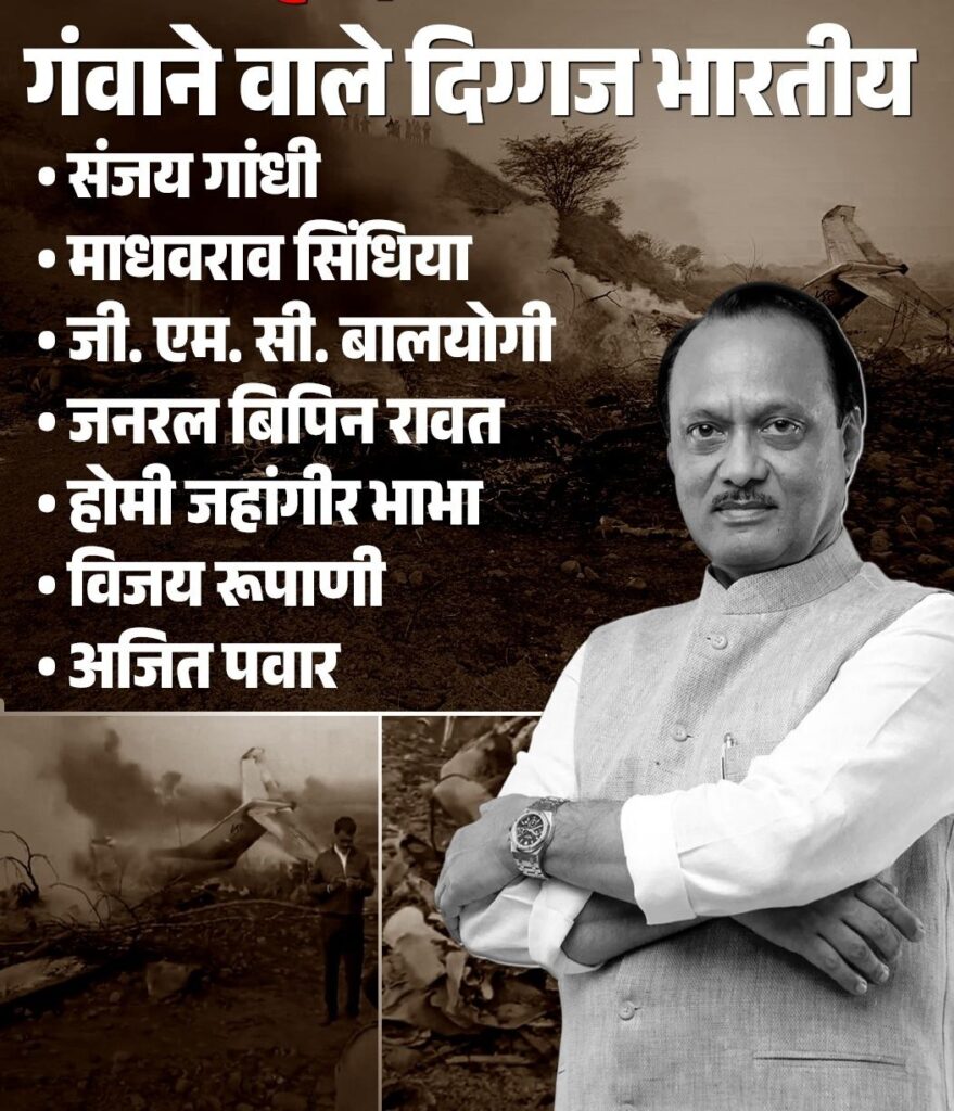 – बारामती में लैंडिंग के दौरान हुई इस दुर्घटना में अजित पवार समेत 6 लोगों की मौत…!!