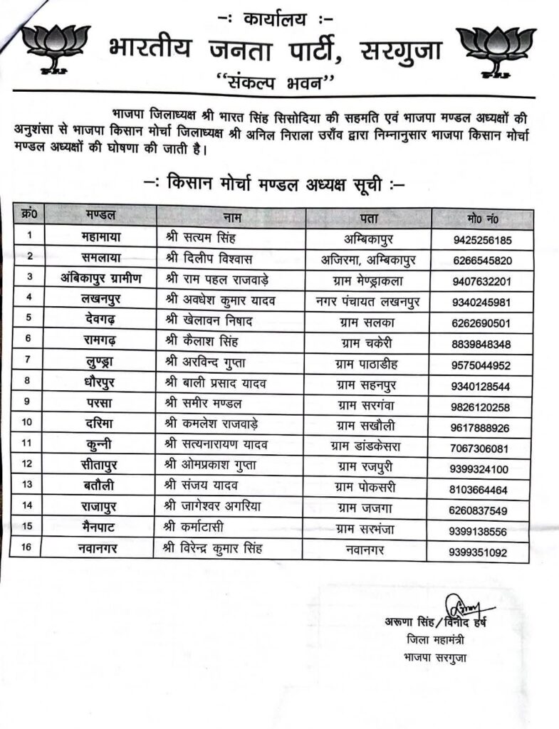 सरगुजा भाजपा किसान मोर्चा का संगठन विस्तार