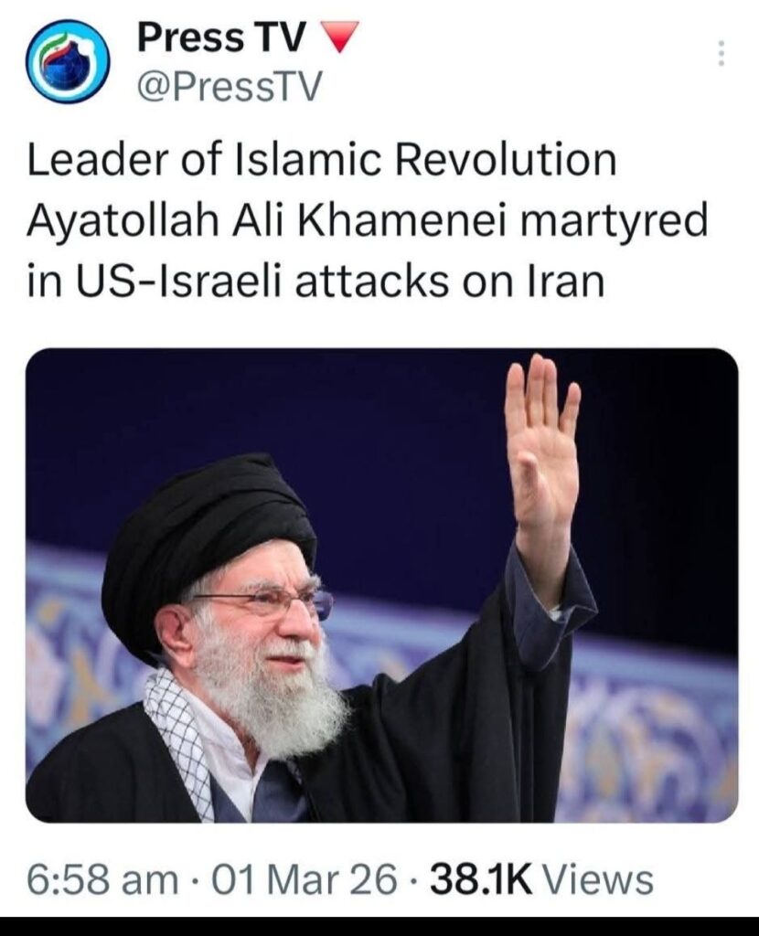 मिडिल ईस्ट में तनाव चरम पर है। ईरानी सरकारी मीडिया के अनुसार हालात ए रोजा में शहीद हुए इमाम खामनेई Ali Khamenei की 1 मार्च 2026 को अमेरिका-इजरायल के संयुक्त हवाई हमलों में मृत्यु हो गई है।