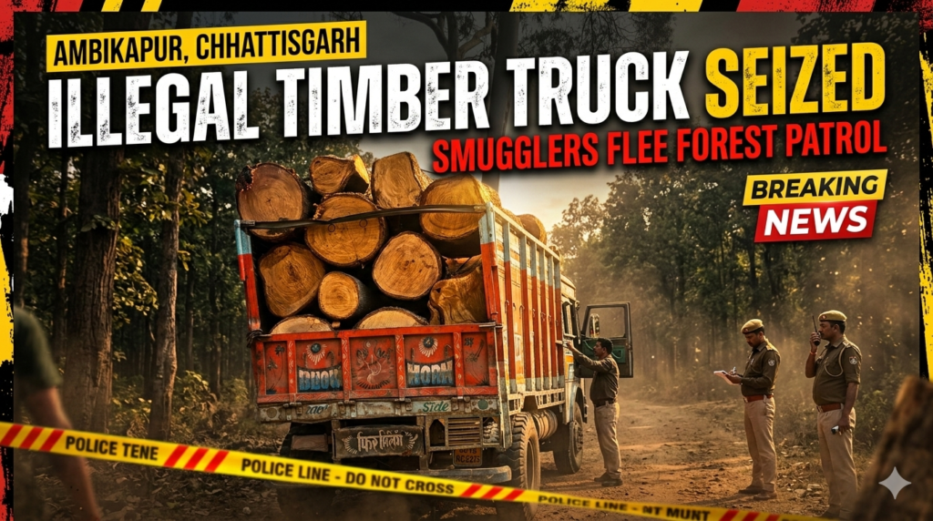 कल देर रात मुखबिर की सूचना पर रेंजर विजय नारायण तिवारी ने टिम गठित कर बिसूनपुर यादव ढाबा के पास से जा रही लकड़ी से भरी ट्रक क्रमांक CG 15 AC5275 को रोक कर वाहन में लोड लकड़ी की जानकारी माँगी तो वाहन चालक के पास किसी भी तरह के वैधानिक कागजात नही होने पर कार्यवाही के डर से वाहन चालक और वाहन में बैठा लकड़ी तस्कर वाहन छोड़ मौके से फ़रार हो गया।