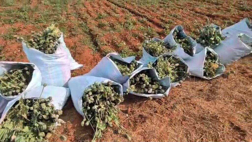 Vijay sing snt news बलरामपुर जिले मे अवैध अफिम की खेती का मामला सामने आया है जहा.पर प्रशासन की बडा एक्सन लिया है जिला प्रशासन को जानकारी लगते ही भारी पुलिस बल तैनात किया गया एवं जिले के कलेक्टर, एसपी एंव जज के मौजुदगी मे कारवाही किया जा रहा है, लगभग तीन एकड मे लगे अफिम की खेती को अब जप्त किया जा रहा है वही पुलिस अधिक्षक ने कहा की कुछ संलिप्त लोगों को गिरफ्त मे ले लिया है और ईसमे जितने भी लोग सामिल है उन लोगों को पुछताछ किया जा रहा है जल्द ही इस मामले कि खुलासा किया जाएगा