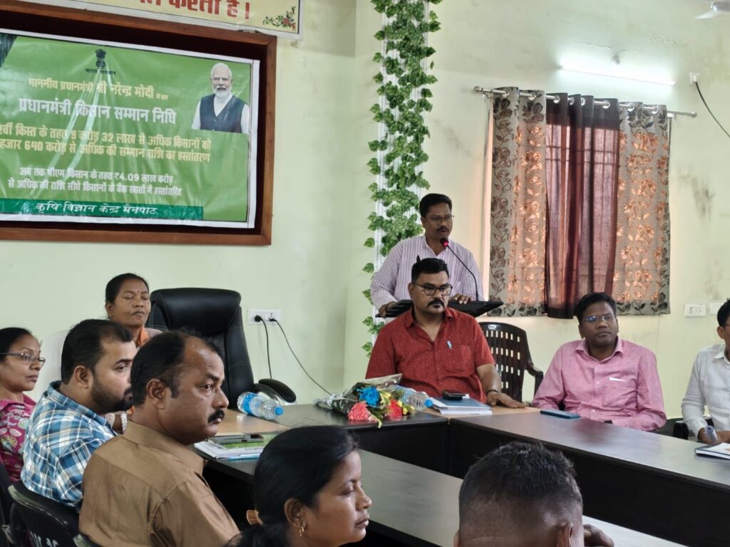 रुपेश गुप्ता surguja news  प्रधानमंत्री किसान सम्मान निधि योजना के अंतर्गत देशभर के किसानों को बड़ी सौगात देते हुए प्रधानमंत्री श्री नरेंद्र मोदी ने असम के गुवाहाटी से 22वीं किस्त की राशि किसानों के बैंक खातों में हस्तांतरित की। इस अवसर पर सरगुजा जिले के कृषि विज्ञान केंद्र, मैनपाट (चलता) में भी कार्यक्रम आयोजित कर किसानों को योजना की जानकारी दी गई और प्रधानमंत्री के संबोधन का सीधा प्रसारण दिखाया गया।