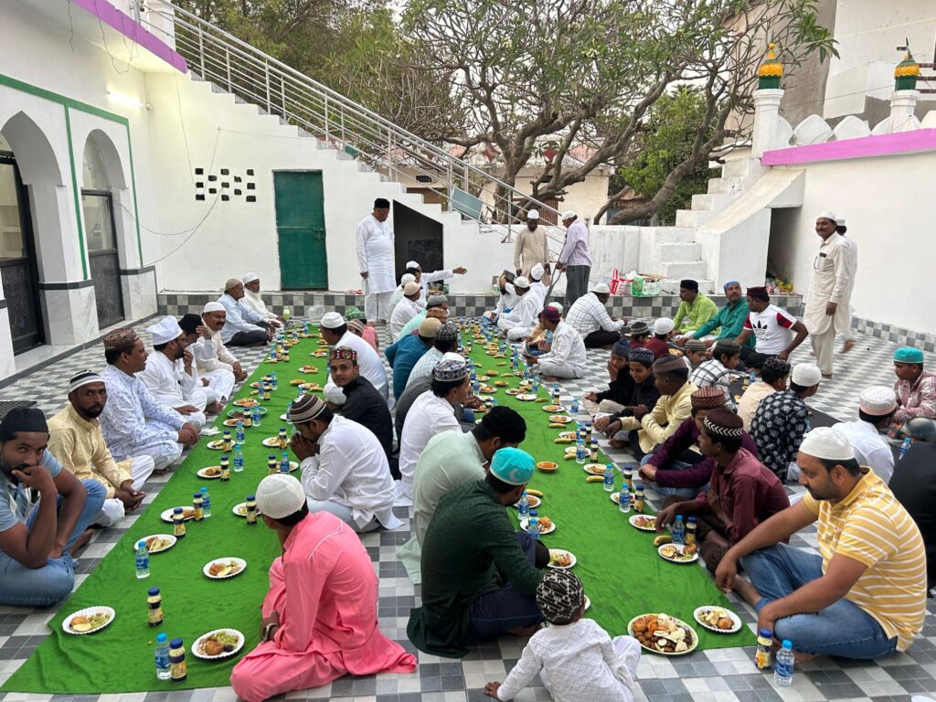 इफ्तार के वक़्त बड़ी तादाद में लोगों ने मस्जिद पहुंचकर रोज़ा खोला और मुल्क में अमन-ओ-अमान, खुशहाली और भाईचारे के लिए दुआएँ कीं।