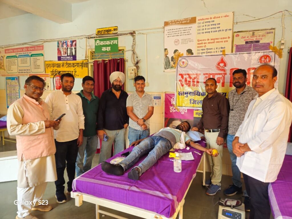 युवा कांग्रेस के कार्यकर्ताओं ने सामुदायिक स्वास्थ्य केन्द्र में किया रक्त दान