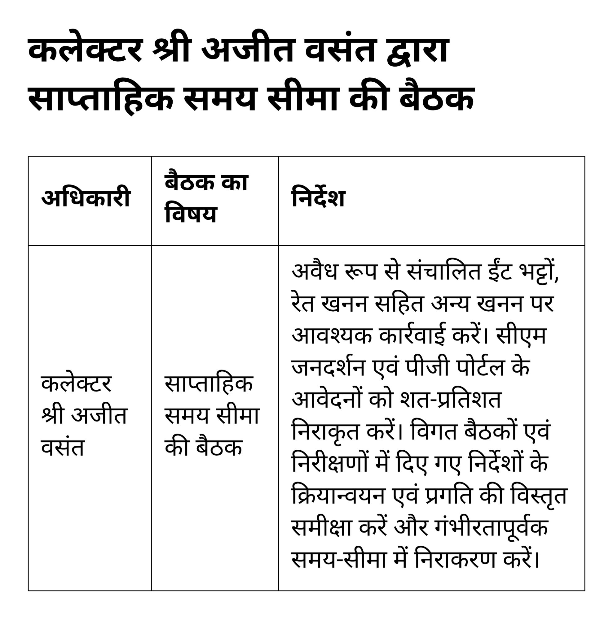 अवैध रूप से संचालित ईंट भट्टों, रेत खनन सहित अन्य पर आवश्यक कार्रवाई के निर्देश-