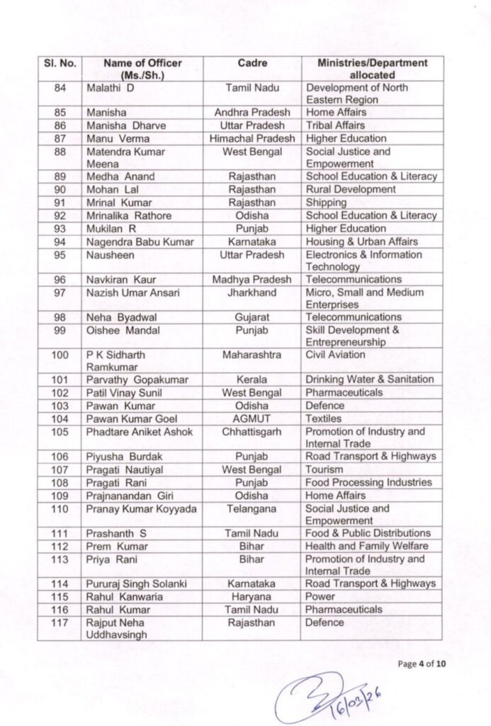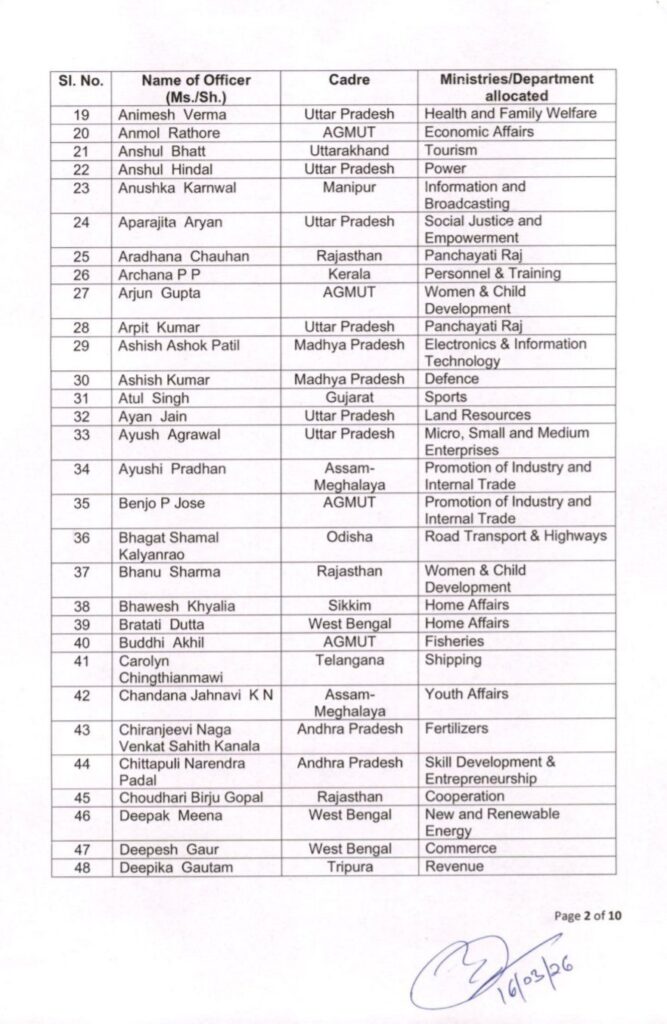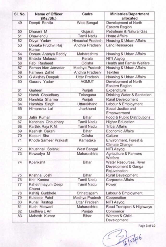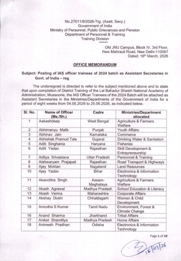 Posting of IAS officer trainees of 2024 batch as Assistant Secretaries in Govt of India