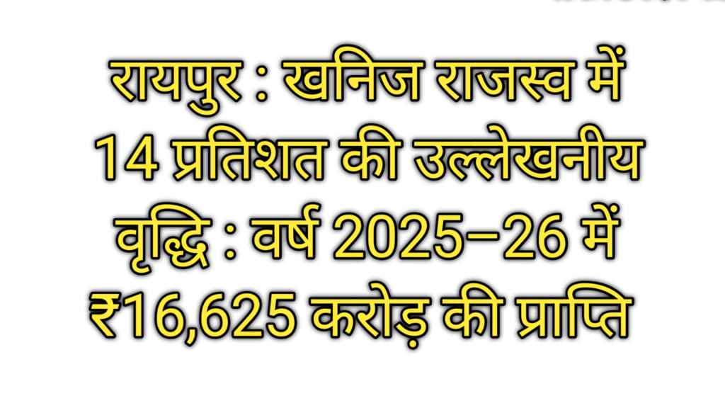 रायपुर खनिज राजस्व में 14 प्रतिशत की उल्लेखनीय वृद्धि : वर्ष 2025–26 में ₹16,625 करोड़ की प्राप्ति