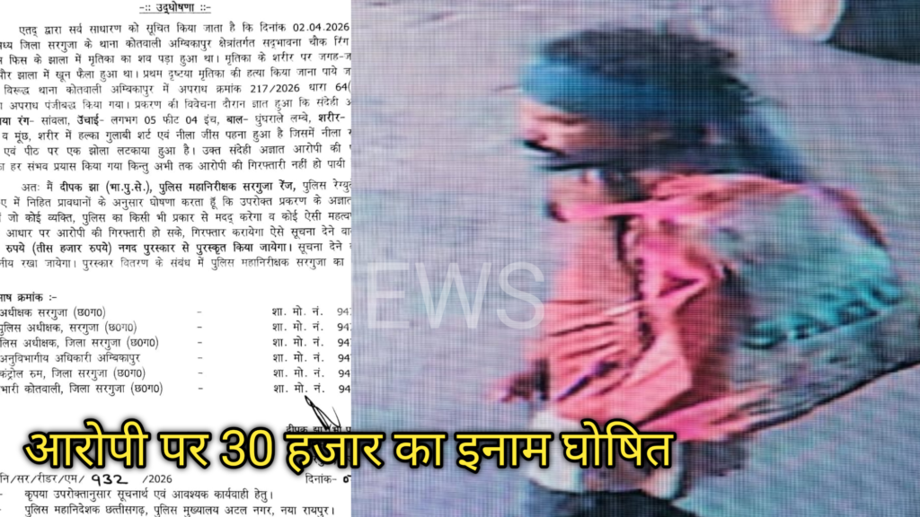 अंबिकापुर में महिला हत्या कांड: आरोपी पर ₹30 हजार का इनाम घोषित