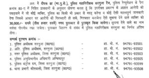 पुलिस ने आम जनता से अपील की है कि आरोपी के संबंध में किसी भी प्रकार की जानकारी मिलने पर तुरंत पुलिस को सूचित करें। सूचना देने वाले व्यक्ति का नाम पूरी तरह गोपनीय रखा जाएगा।