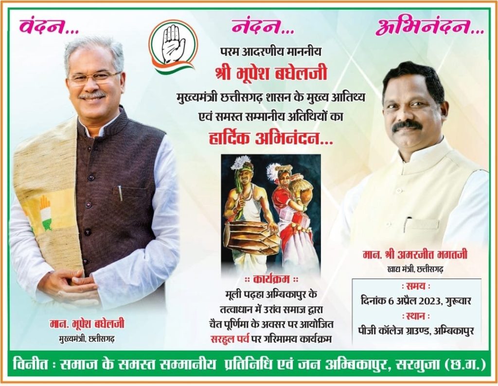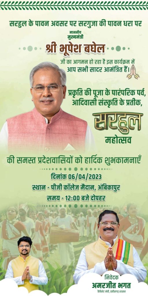 मुख्यमंत्री श्री भूपेश बघेल सरहुल पर्व में आज होंगे शामिल