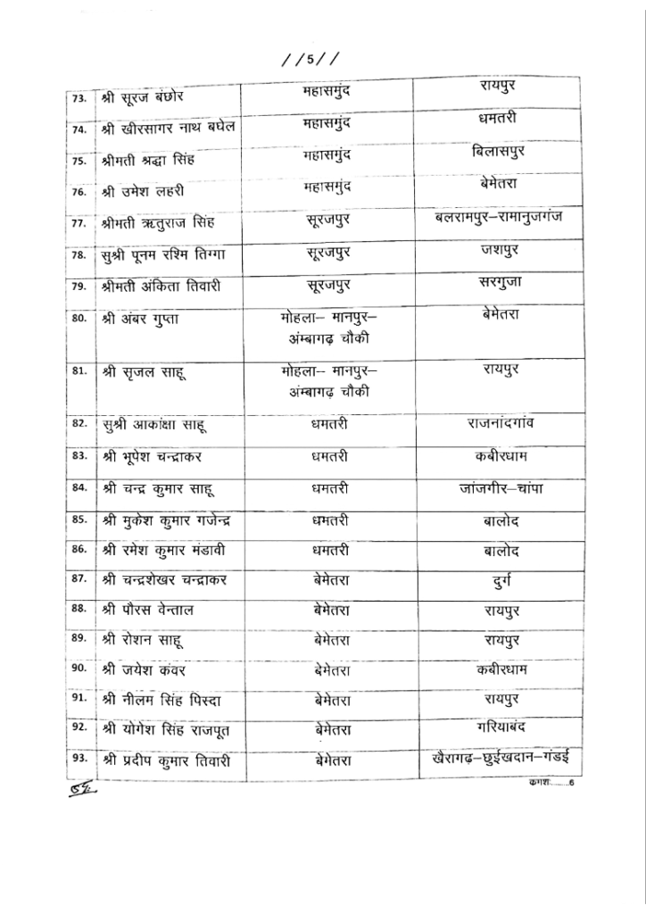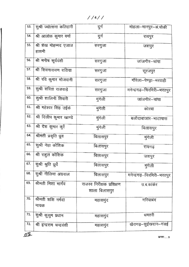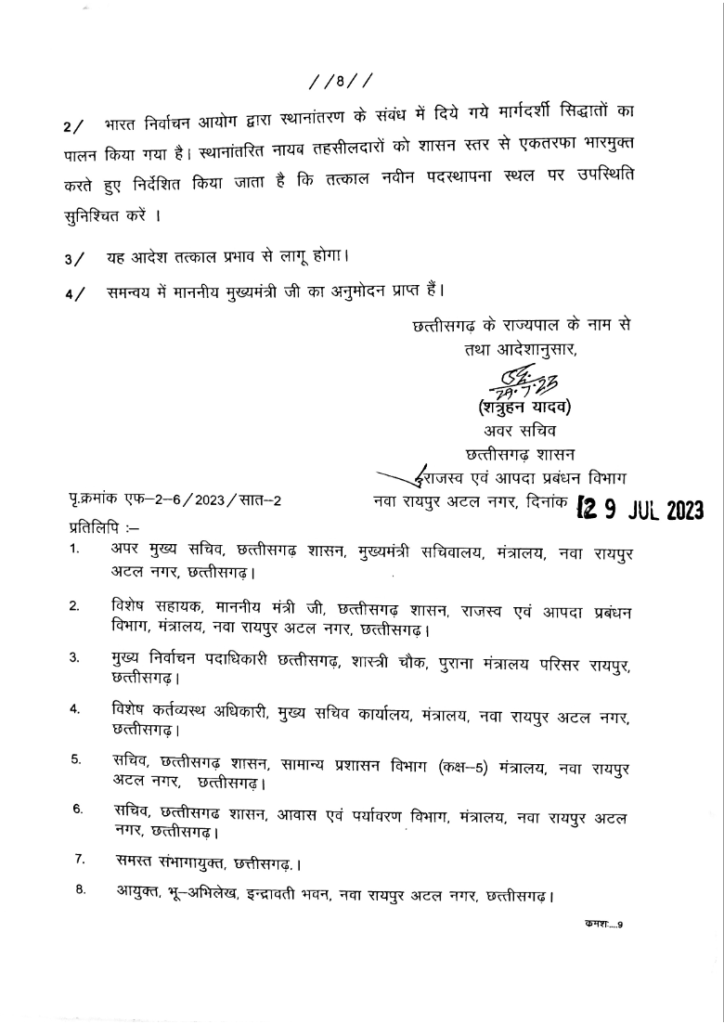 रायपुर। छत्तीसगढ़ सरकार ने शनिवार की देर रात तहसीलदार व नायब तहसीलदारों की तबादला सूची जारी की है। सूची में करीब तहसीलदार 77 और नायब तहसीलदार 132 अधिकारियों के नाम शामिल हैं।