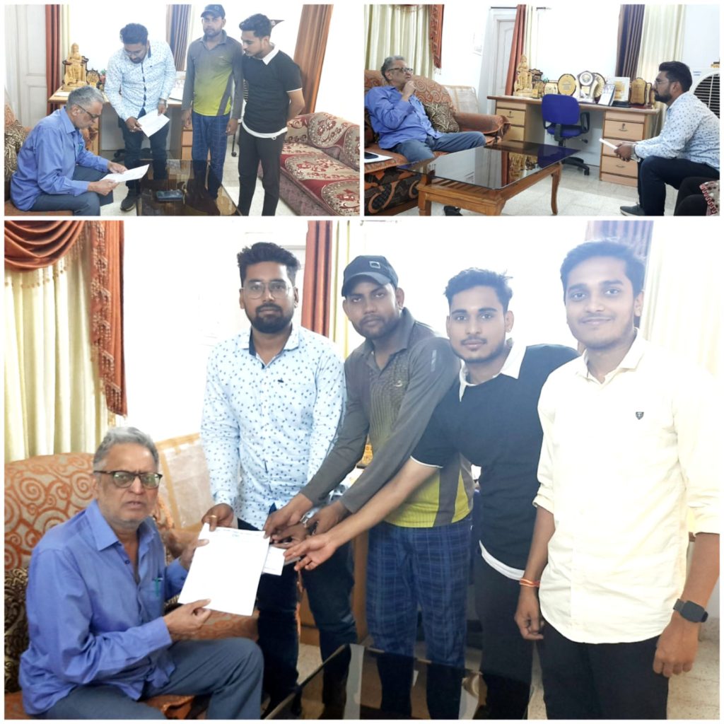 एनएसयूआई ने प्रदेश महासचिव ने विश्वविद्यालय के कुलपति को ज्ञापन सौप दो विषयो में पूरक परीक्षा करवाने की मांग की