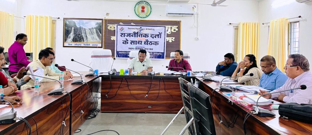 मनेन्द्रगढ़ – कलेक्टर एवं जिला निर्वाचन अधिकारी श्री नरेन्द्र कुमार दुग्गा ने सभा कक्ष में राजनैतिक दलों के प्रतिनिधियों की बैठक में चुनाव लड़ने वाले अभ्यर्थियों द्वारा विभिन्न मदों जैसे-वाहन, लाईट, माईक, शामियाना, डेकोरेशन, भोजन, चाय-पानी, नास्ता, वीडियोग्राफी, सोशल मीडिया, बल्क एसएमएम सहित अन्य समस्त प्रकार के प्रचार-प्रसार सामग्री व अन्य विभिन्न मदों में होने वाले व्यय के दर निर्धारण पर चर्चा की।